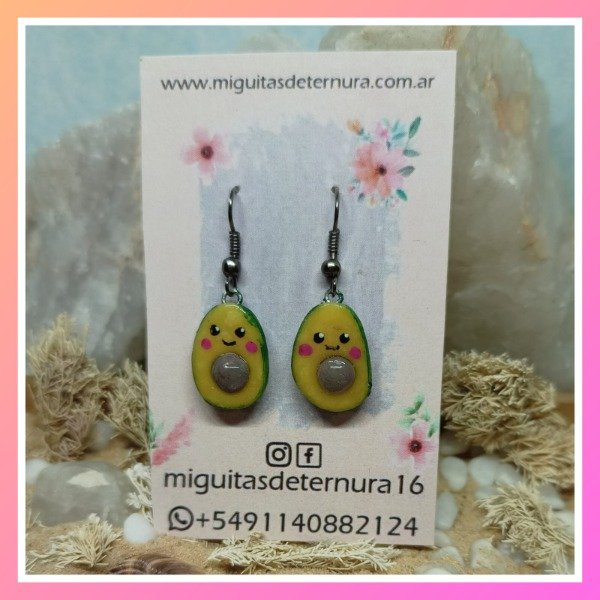 Estos aritos de medias paltitas con carita kawaii son el toque perfecto para darle dulzura y buena vibra a tu look. Cada palta sonríe con ternura y parece decirte “¡hoy va a ser un día lindo!”.